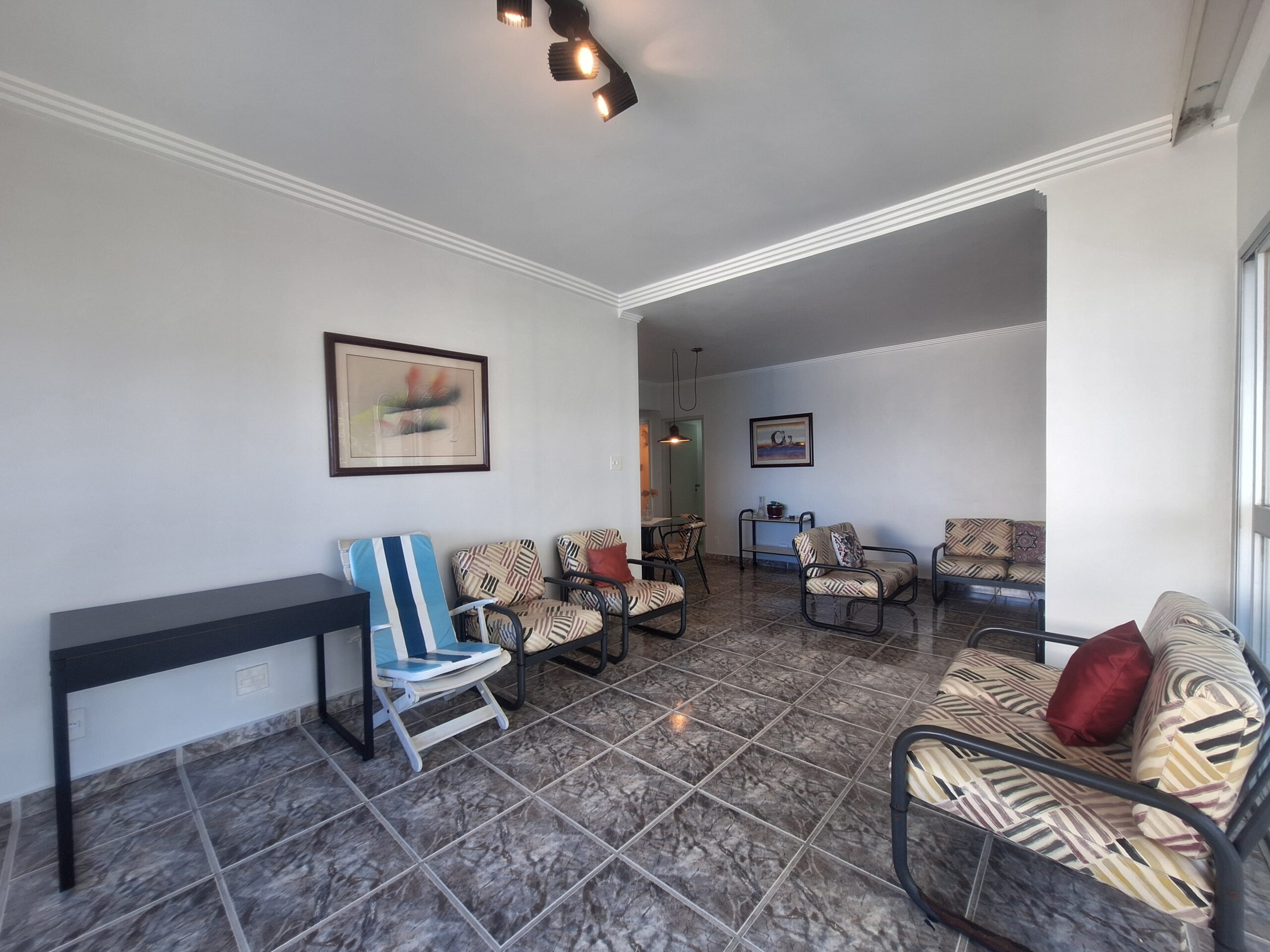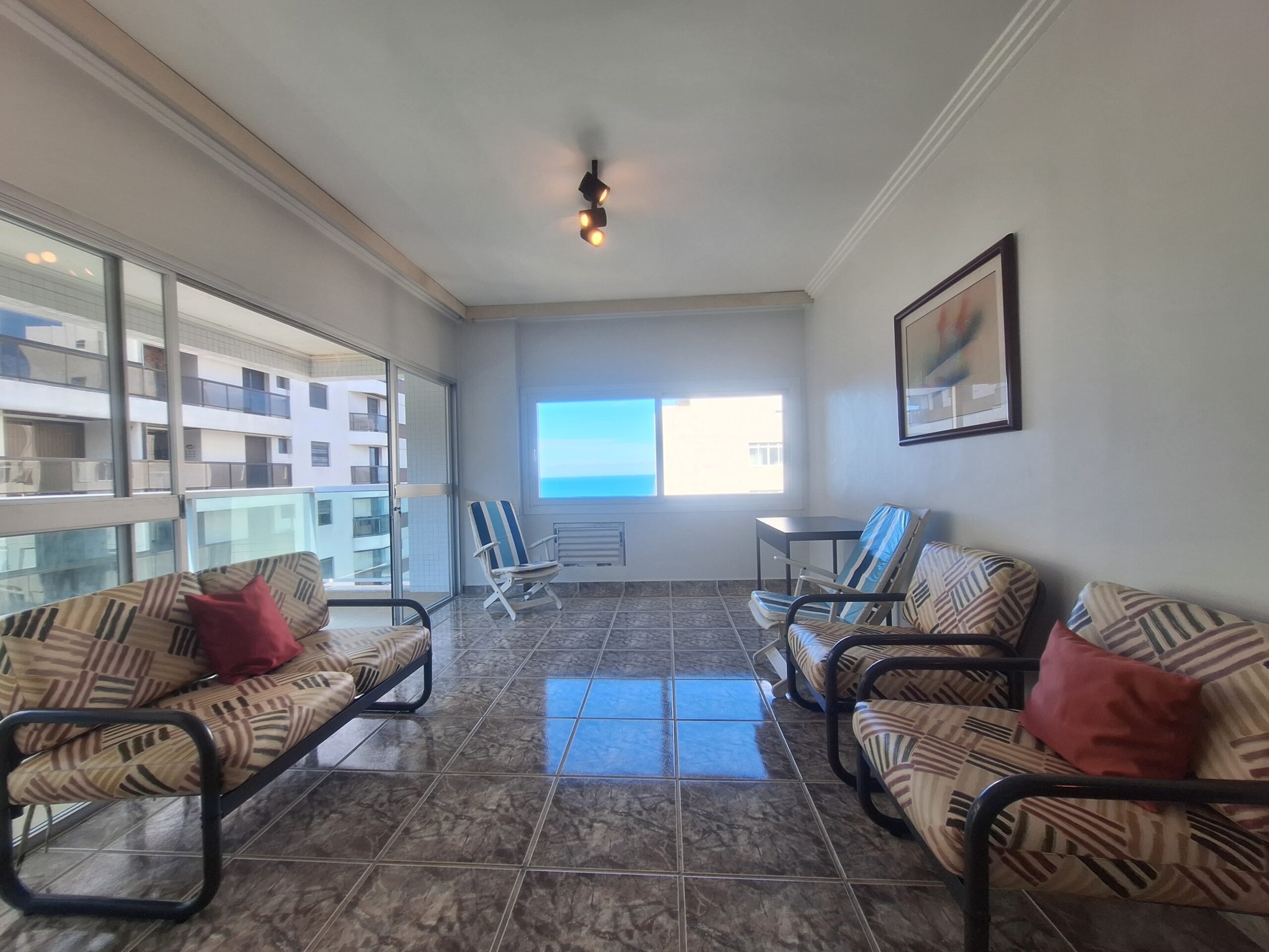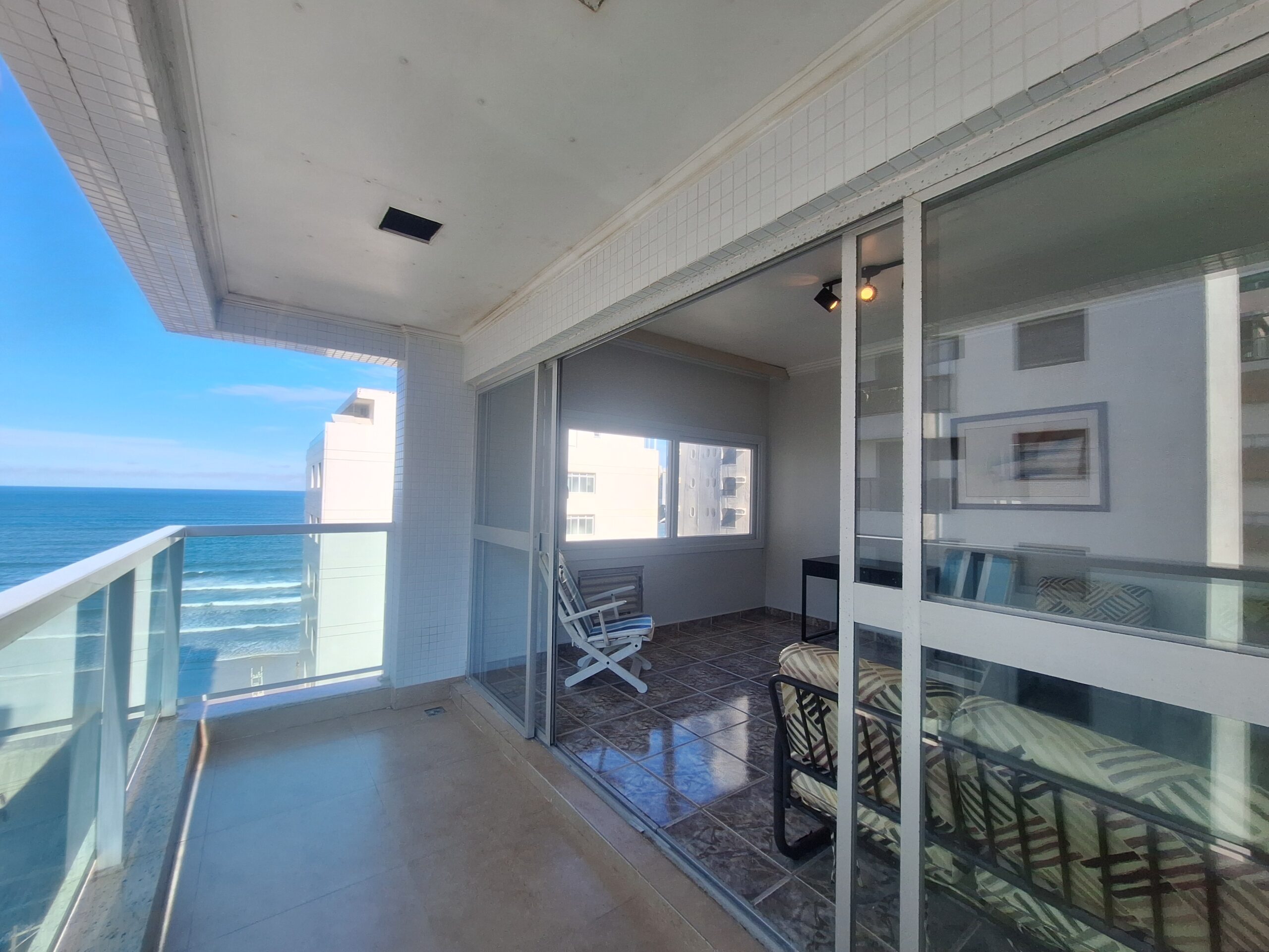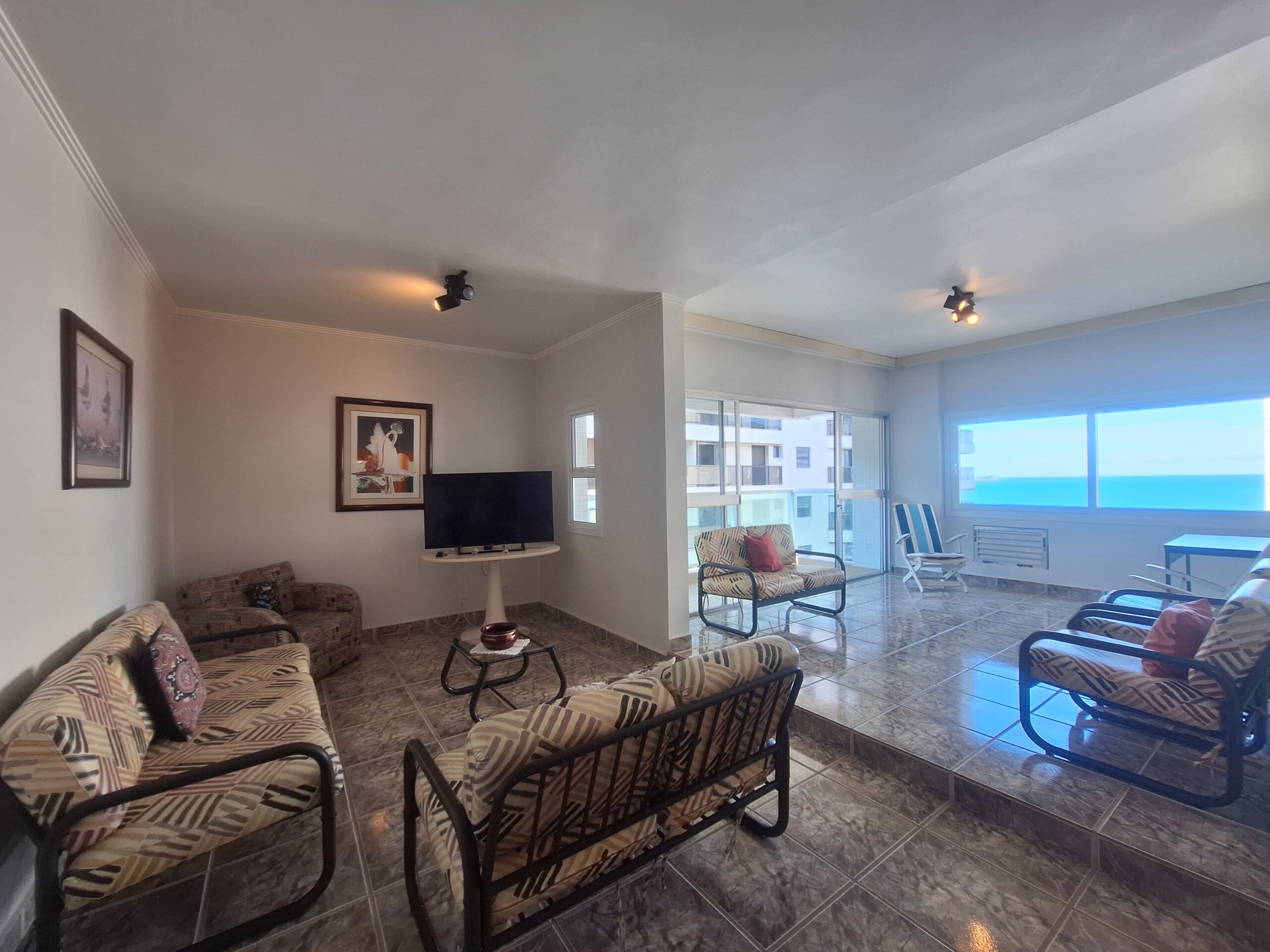 Sala 2 ambientes com sacada e vista mar